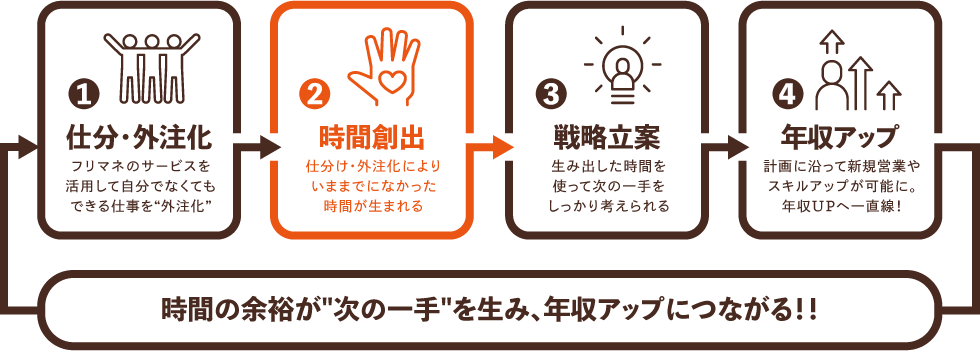 作業を外注することで、あなたにしかできない仕事に専念でき、価値と品質の向上につながります。